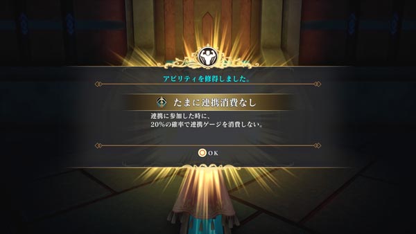 なんて思いながら進めてたんですが、途中からダメージがにょきにょき伸びてた印象で、中盤から属性技を覚えて弱点を突きやすくなって連携も頻繁に発生させられるし、単体用連携と全体用連携とちゃんと選択肢を提示してくれるし、任意のタイミングで発動できるし、総じてつよつよ便利システムでした。